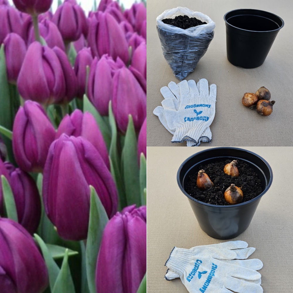 - 3 луковицы тюльпана сорта Пурпл Леди