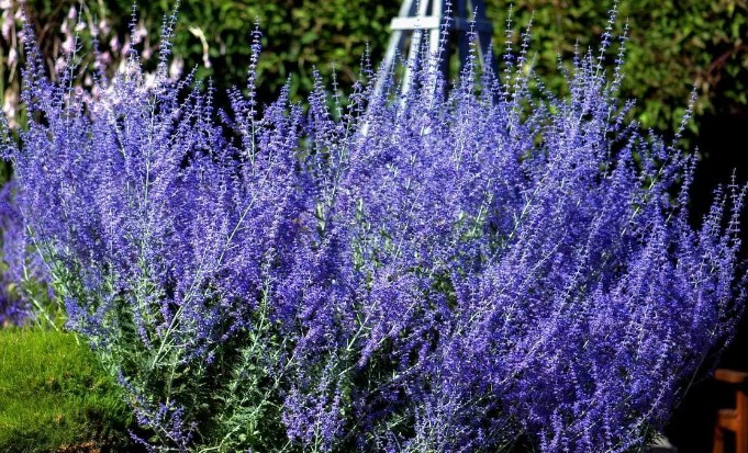 Перовския лебедолистная Тайга (Perovskia atriplicifolia) – это представитель семейства Яснотковых, известный также под названием русский шалфей. Этот раскидистый кустарник достигает высоты до 50 см и радует глаз светло-голубыми цветами в августе и сентябре. Перовския лебедолистная напоминает лаванду, но отличается более крупными размерами и продолжительным цветением, которое длится с июля до конца октября.