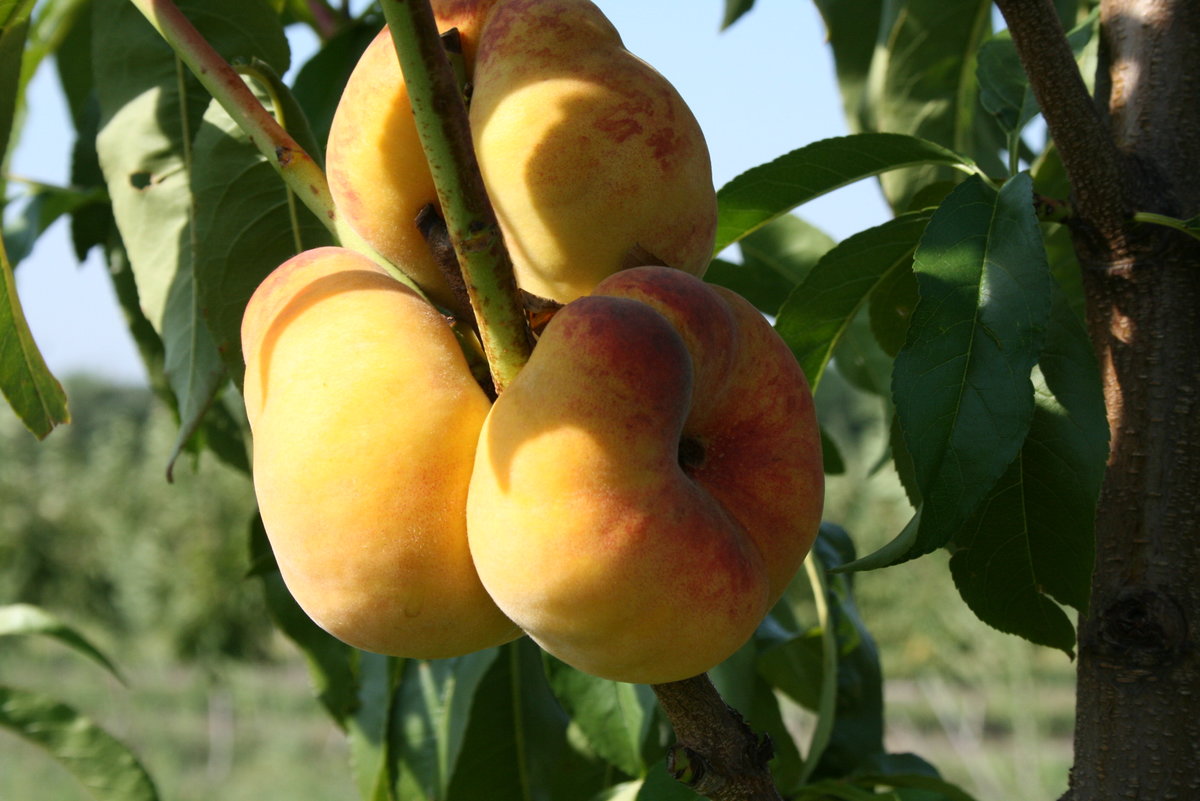 Персик колоновидный сорта Инжирный привлекает внимание своими превосходными вкусовыми характеристиками. Плоды этого сорта имеют плоскую форму и маленькую косточку, что делает их особенно удобными для употребления. Вес одного персика составляет 180-200 грамм, при этом основную часть плода занимает сочная, нежная, сладкая и ароматная мякоть.